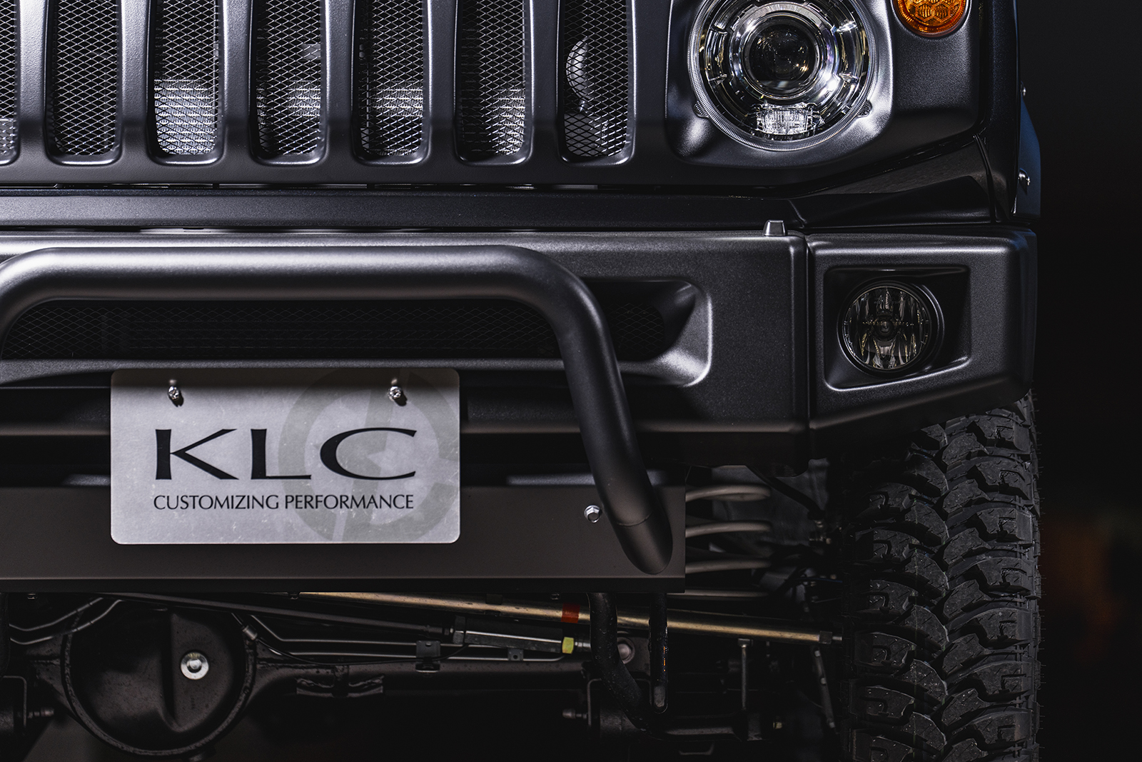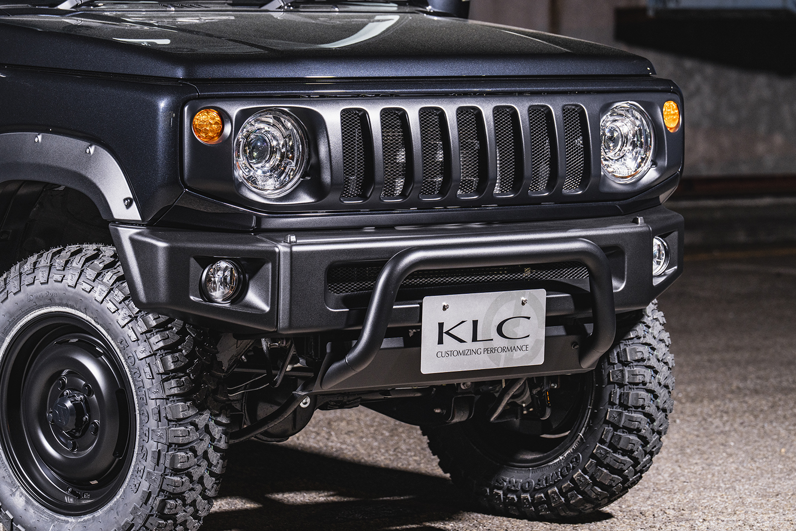 フェイスグリルは「#ナナケツ」。その名の通り、セブンスロットを採用したジープライクなデザインが特徴で、デモカーはフロントショートバンパー64と同じく「シボブラック塗装済み」を装着。純正のファイブスロットグリルよりも格段に彫りが深く、立体的な構造になっているため、真っ黒でもメリハリのある表情に仕立てられる。未塗装でも購入可能につき、それを別のカラーに塗って使ったり、ボディ同色に揃えるのも面白いだろう。