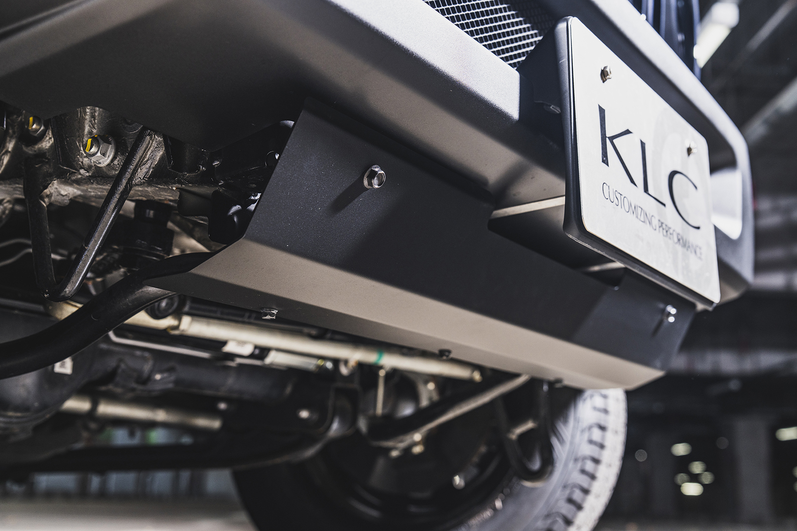 フロントはショートバンパー74にチェンジ。無駄を削ぎ落としたデザインが、このシエラをさらに洗練された雰囲気に仕立ててくれる。バンパーが短くなることで見えてしまうフレーム類は、専用のスキッドプレートでさり気なくカバー。無骨さやオフロード感を出したいならむき出しのままもアリだが、街乗りメインなら隠した方がスマートだろう。素材はサビに強いステンレス製で、カラーは半ツヤの黒。ショートバンパー74と同じく自然な装着感がウリ。