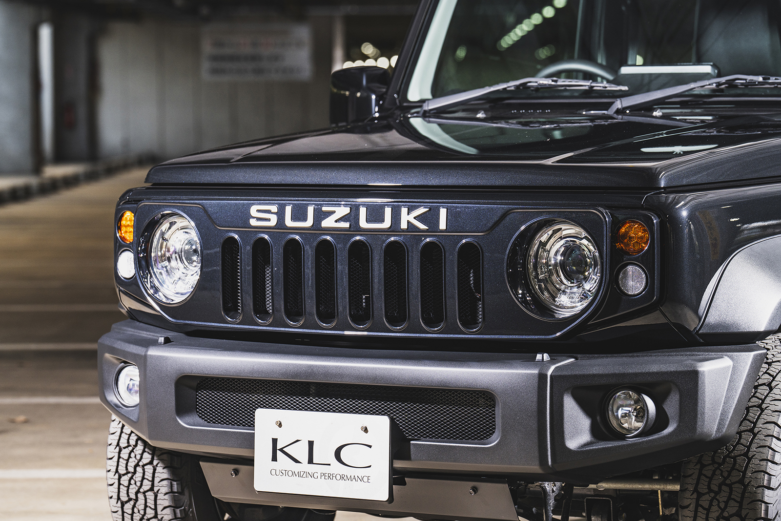 オシャレ感を出したいならグリル交換も有効。例えばこのフェイスグリル・エスジェイ。SJ10ジムニーをモチーフにしたレトロな意匠が特徴で、ボディ同色に塗装してもしっかりメリハリを出せるのがポイント。SUZUKIマークの部分は立体形状になっており、デモカーはそこにオプションの白ステッカーを貼ってアイキャッチとしている。ヘリテージのフェイスグリルシリーズは種類豊富につき、好みの一品を組み合わせてみるのも楽しいだろう。