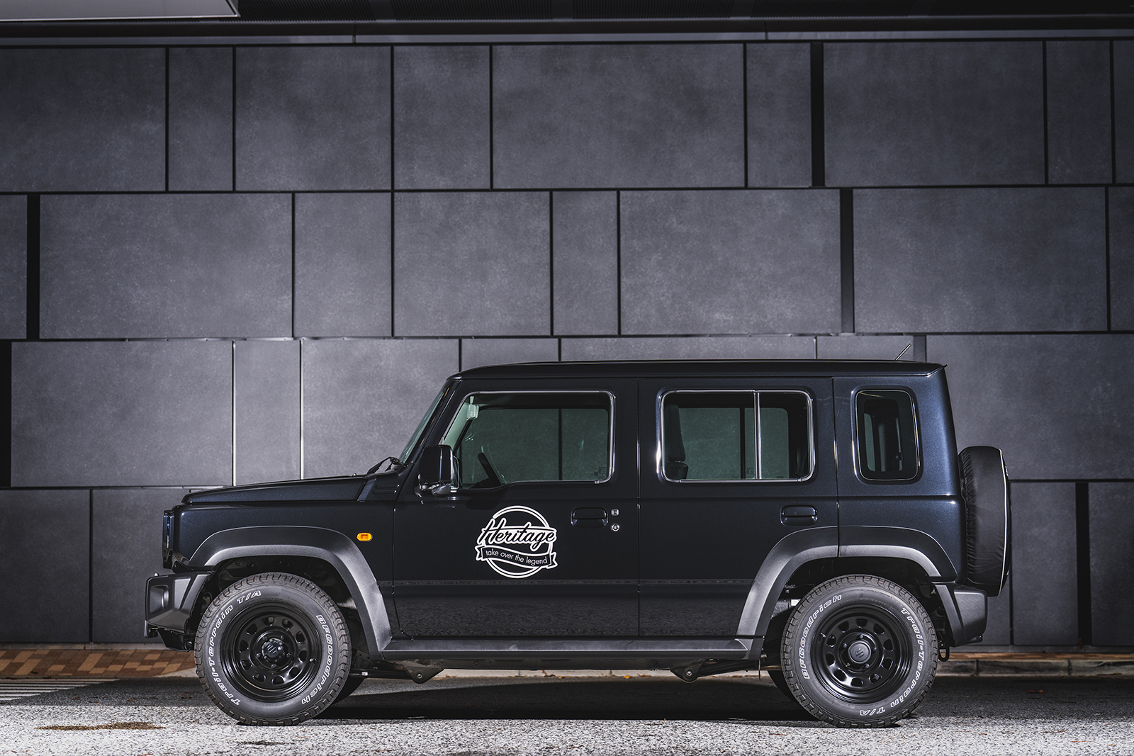 もともと車高を高めに設定されている4WDを、あえて落とす。それは数あるカスタム手法の一つだ。特にロングボディのノマドはローダウンがハマる。そこでヘリテージではスーパーダウンスプリング「タートルズ」のラインナップを刷新。ノマド向けに専用チューニングを実施して、約50ミリのダウン量を得られる商品を開発した。これで一気に低重心化を図り、クールでアーバンな美的シルエットを実現する。もちろん普段の走行性を損なうことはなく、保安基準にも適合。