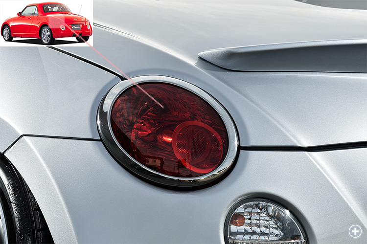 L880K コペン テールランプリング(メッキ調)左右セット。ワンタッチで装着可能なパーツです。