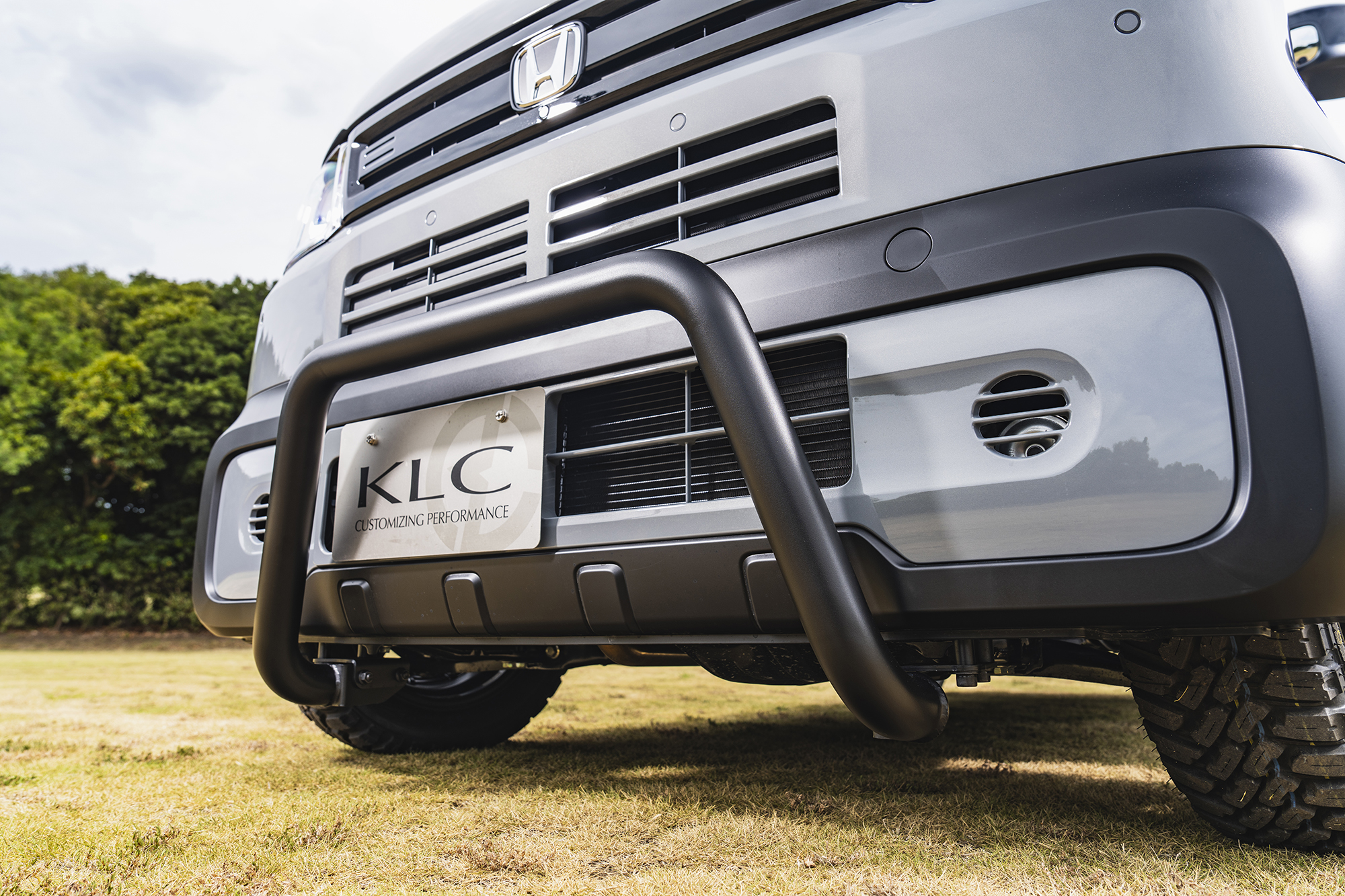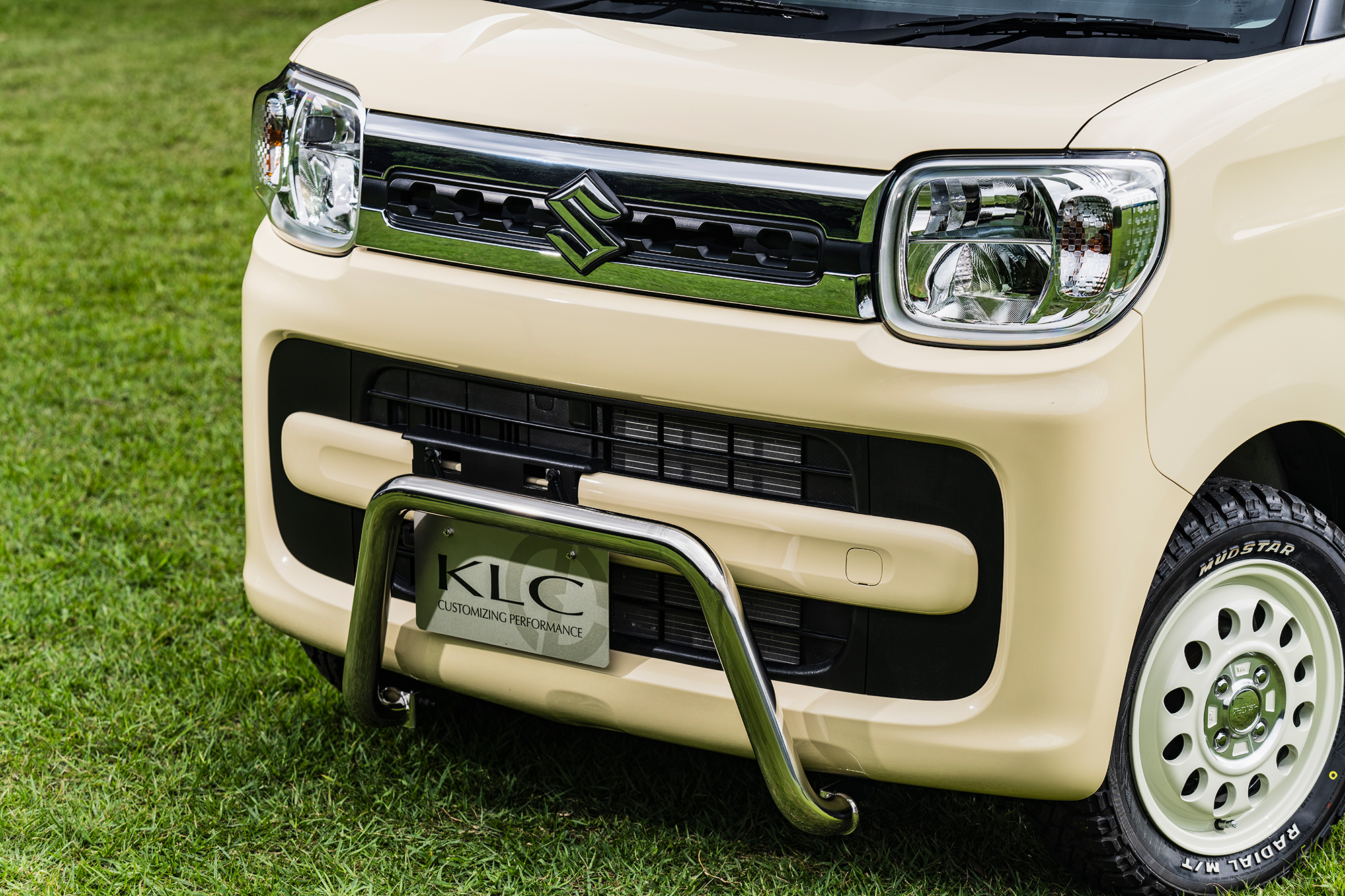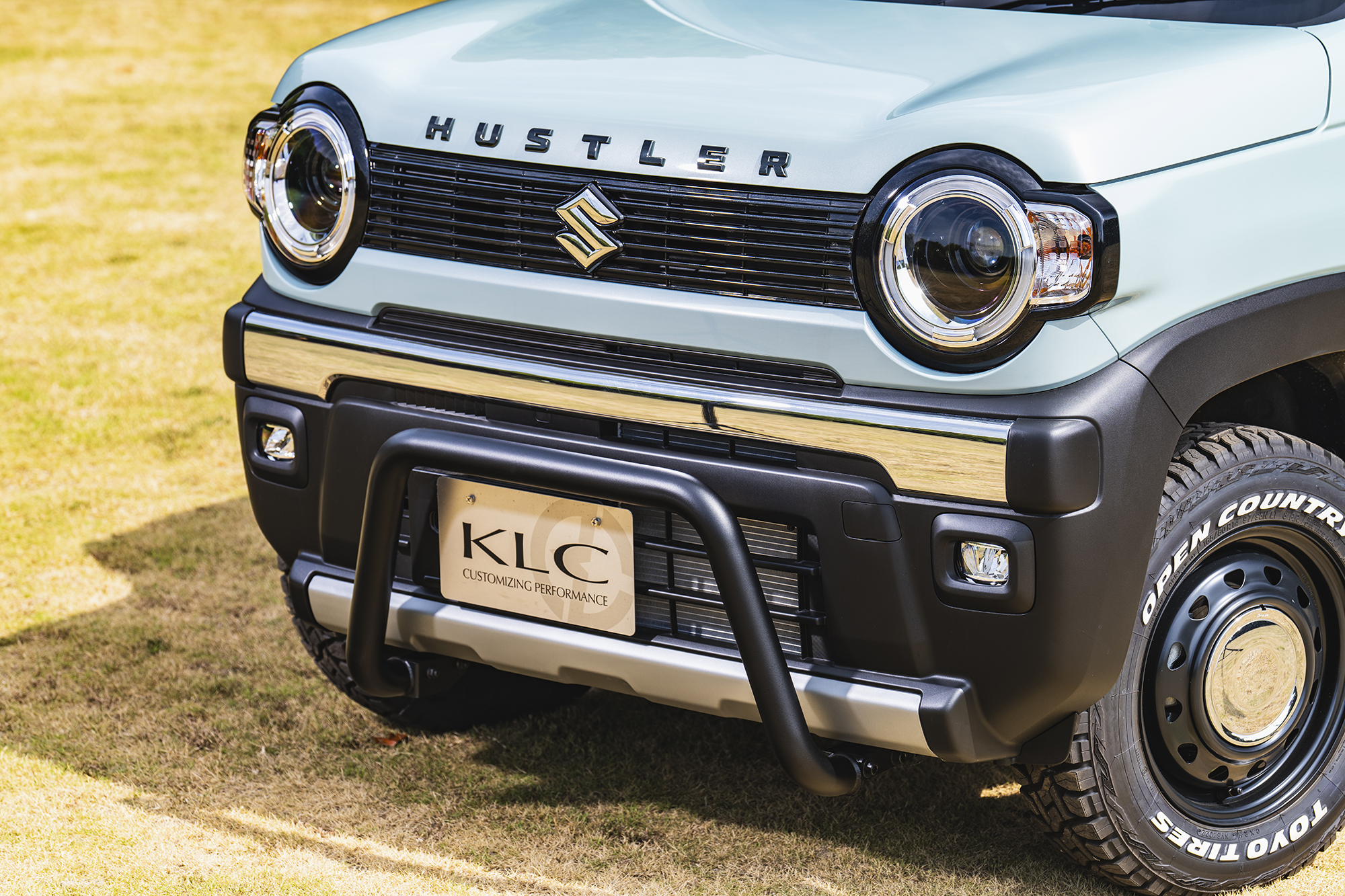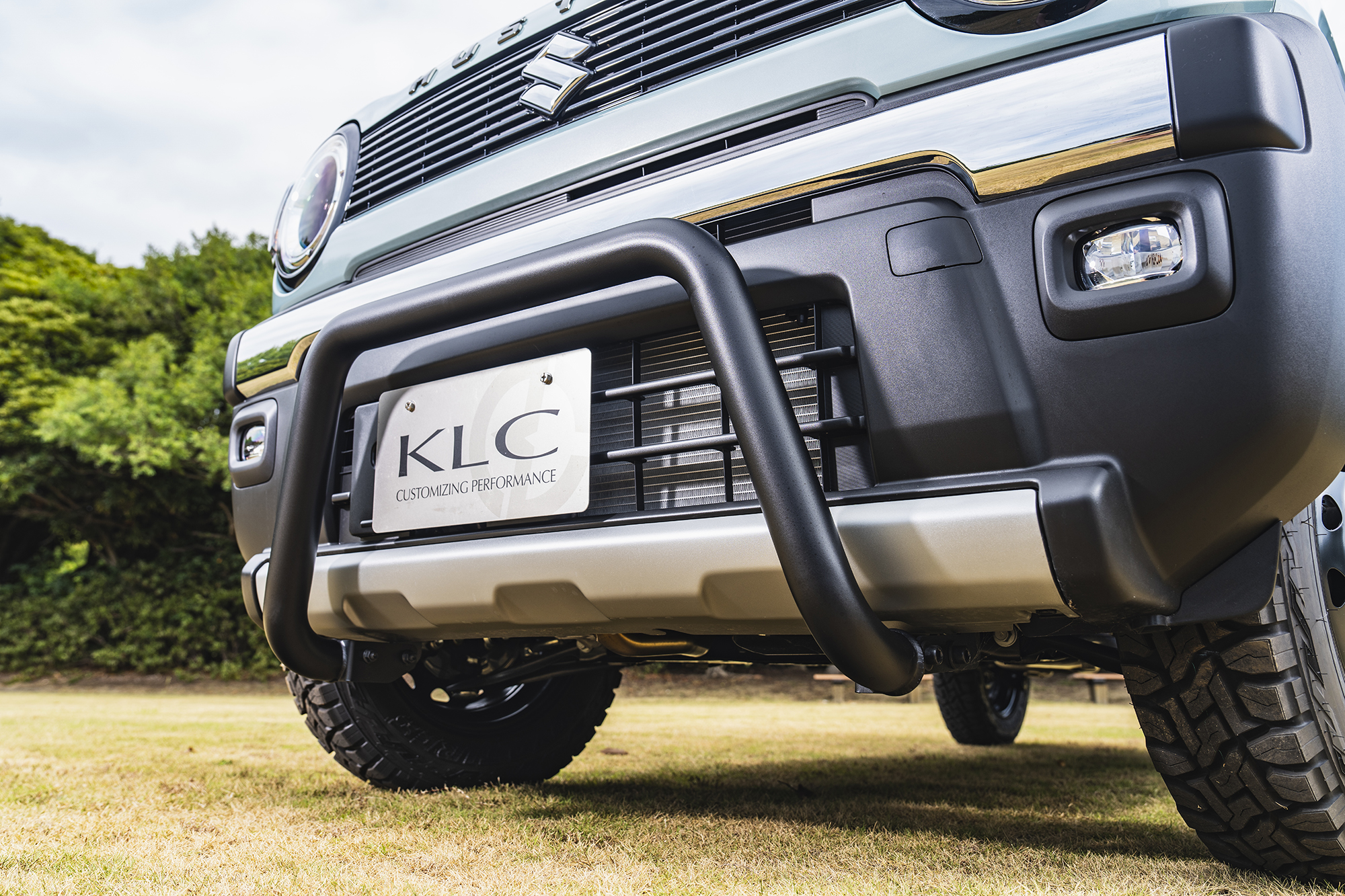 日本でブルバー、カンガルーバーはドレスアップ的な意味合いが強いとはいえ、サイズが大きくゴツいタイプがほとんど。確かにランドクルーザーやハイラックス、ラングラーといったガチのクロカンが装備していると迫力が出ていい感じなのだが、一般的な軽自動車には少々ミスマッチ。そこでKLCでは、スズキ・エブリイやダイハツ・ハイゼットカーゴをはじめとする軽バン、スズキ・キャリイ、ダイハツ・ハイゼットトラックなどの軽トラ、あるいはスズキ・ハスラーやスペーシアギアなど、「リフトアップが似合う軽自動車」をターゲットに、もっとカジュアルに装着できるブルバーの開発を開始した。