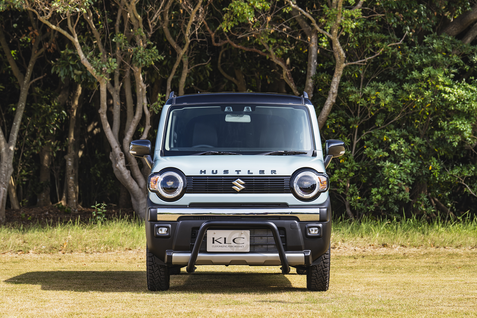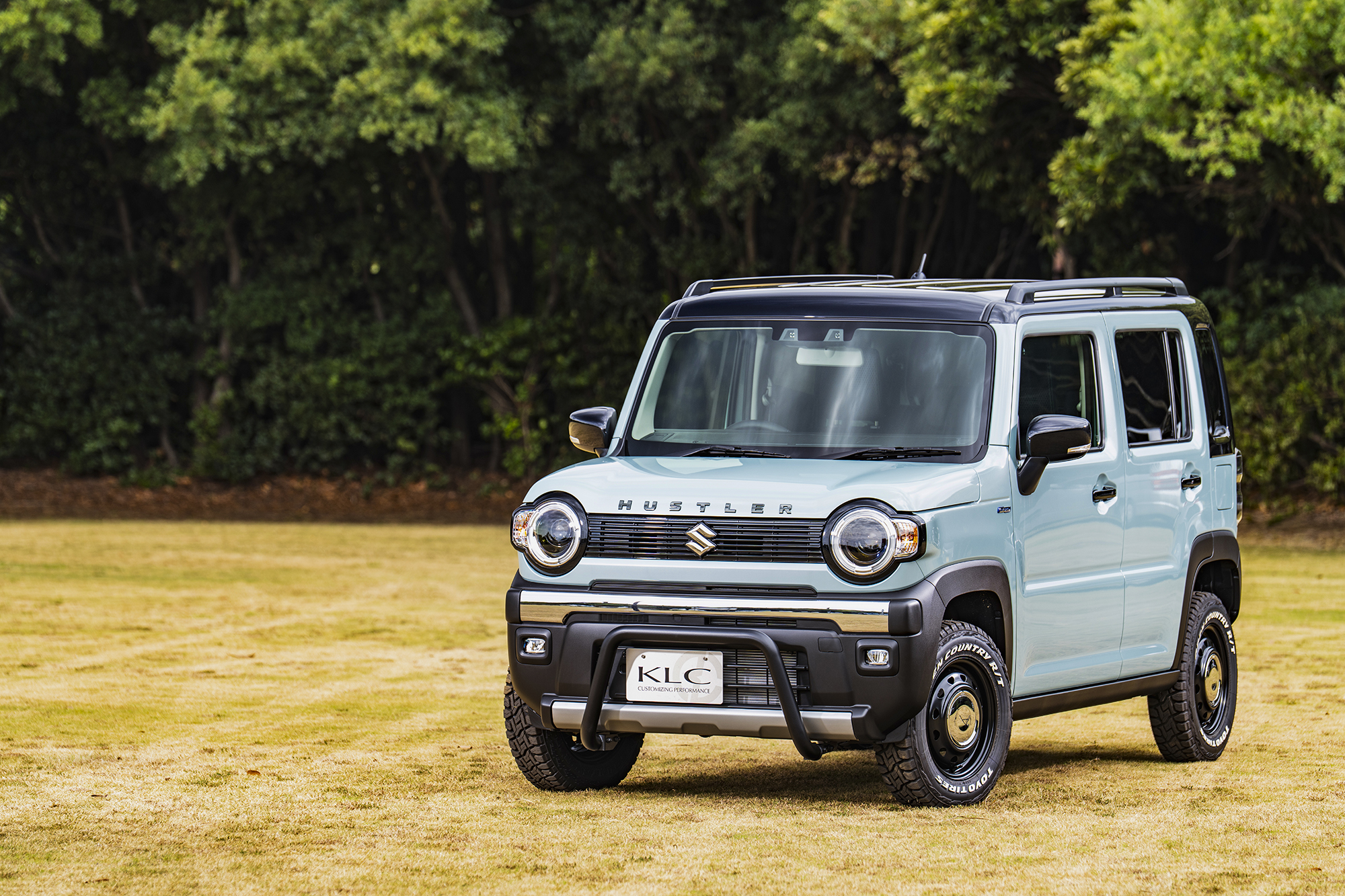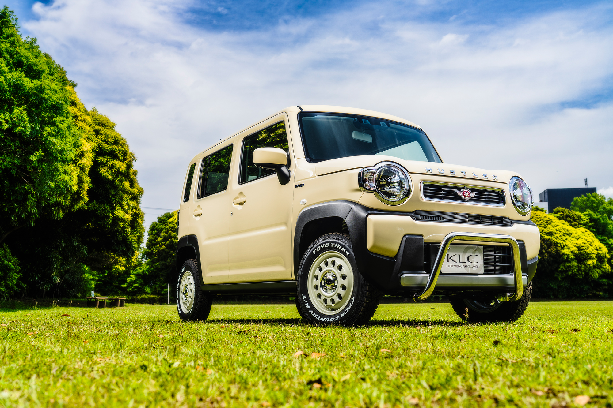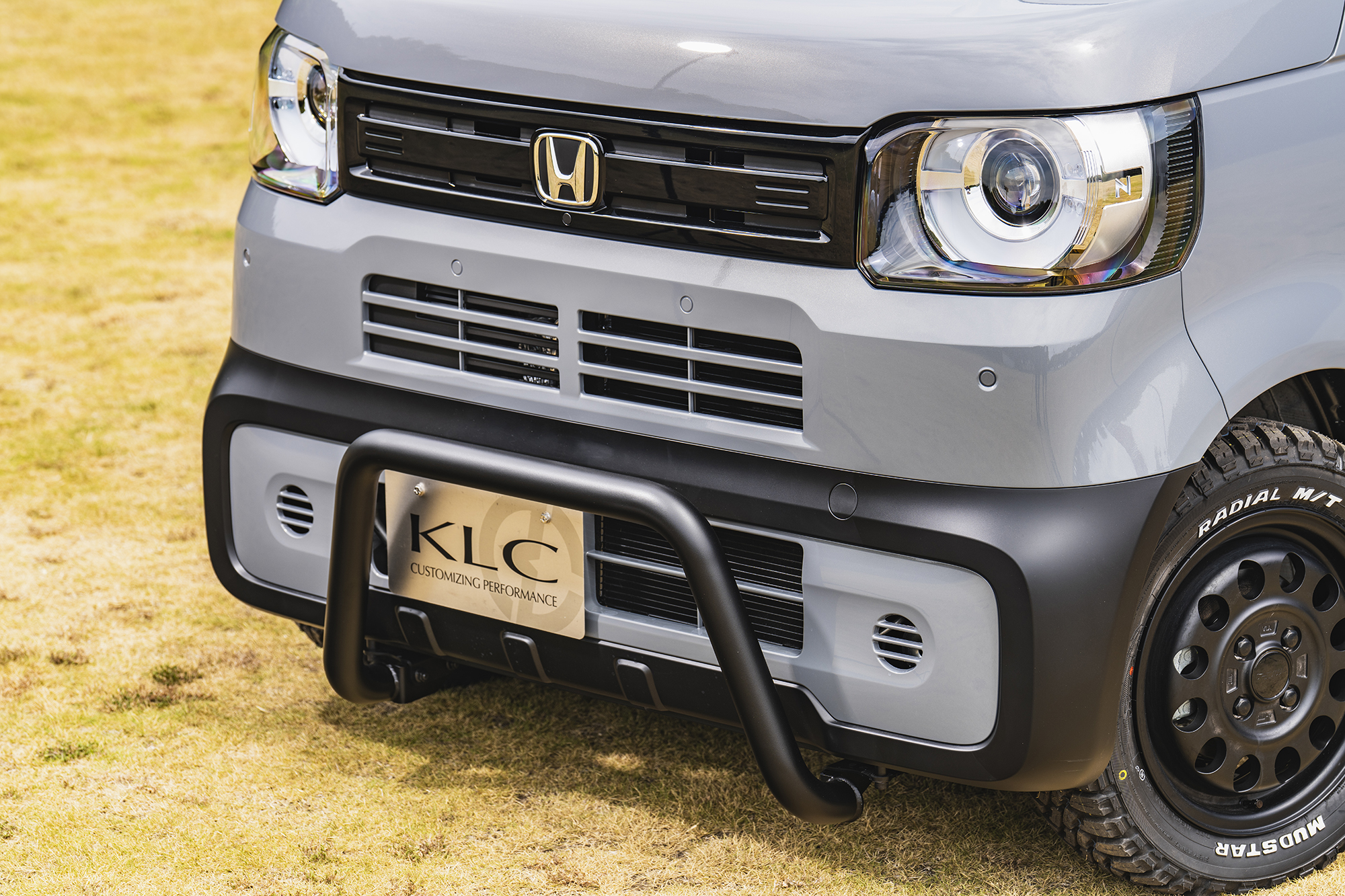 日本でブルバー、カンガルーバーはドレスアップ的な意味合いが強いとはいえ、サイズが大きくゴツいタイプがほとんど。確かにランドクルーザーやハイラックス、ラングラーといったガチのクロカンが装備していると迫力が出ていい感じなのだが、一般的な軽自動車には少々ミスマッチ。そこでKLCでは、スズキ・エブリイやダイハツ・ハイゼットカーゴをはじめとする軽バン、スズキ・キャリイ、ダイハツ・ハイゼットトラックなどの軽トラ、あるいはスズキ・ハスラーやスペーシアギアなど、「リフトアップが似合う軽自動車」をターゲットに、もっとカジュアルに装着できるブルバーの開発を開始した。