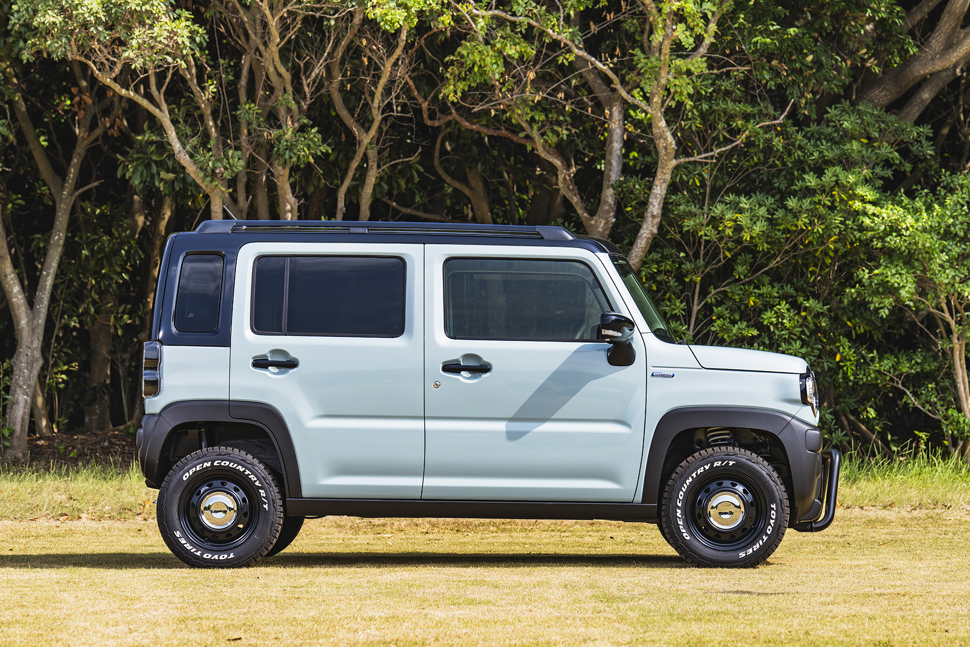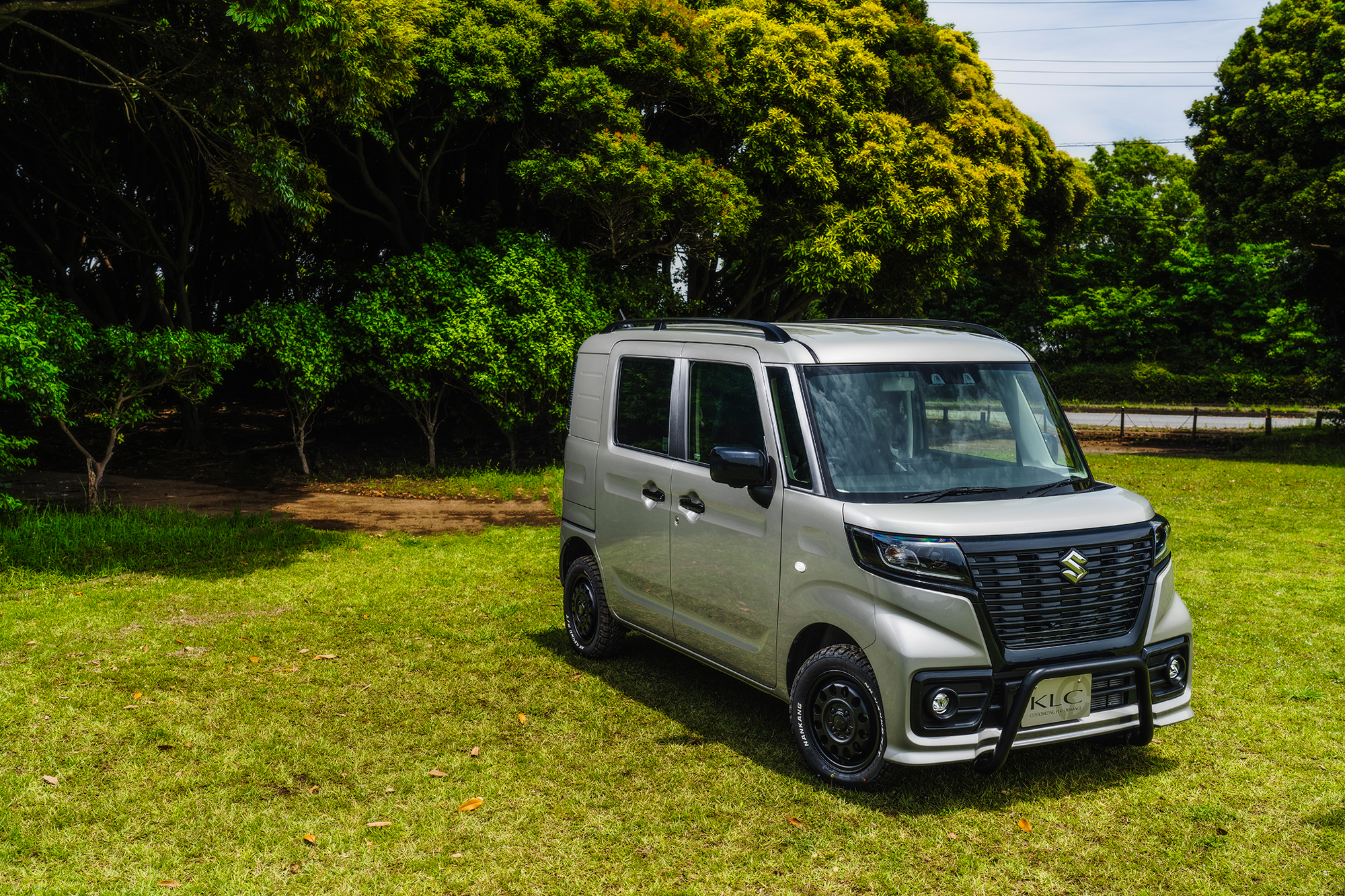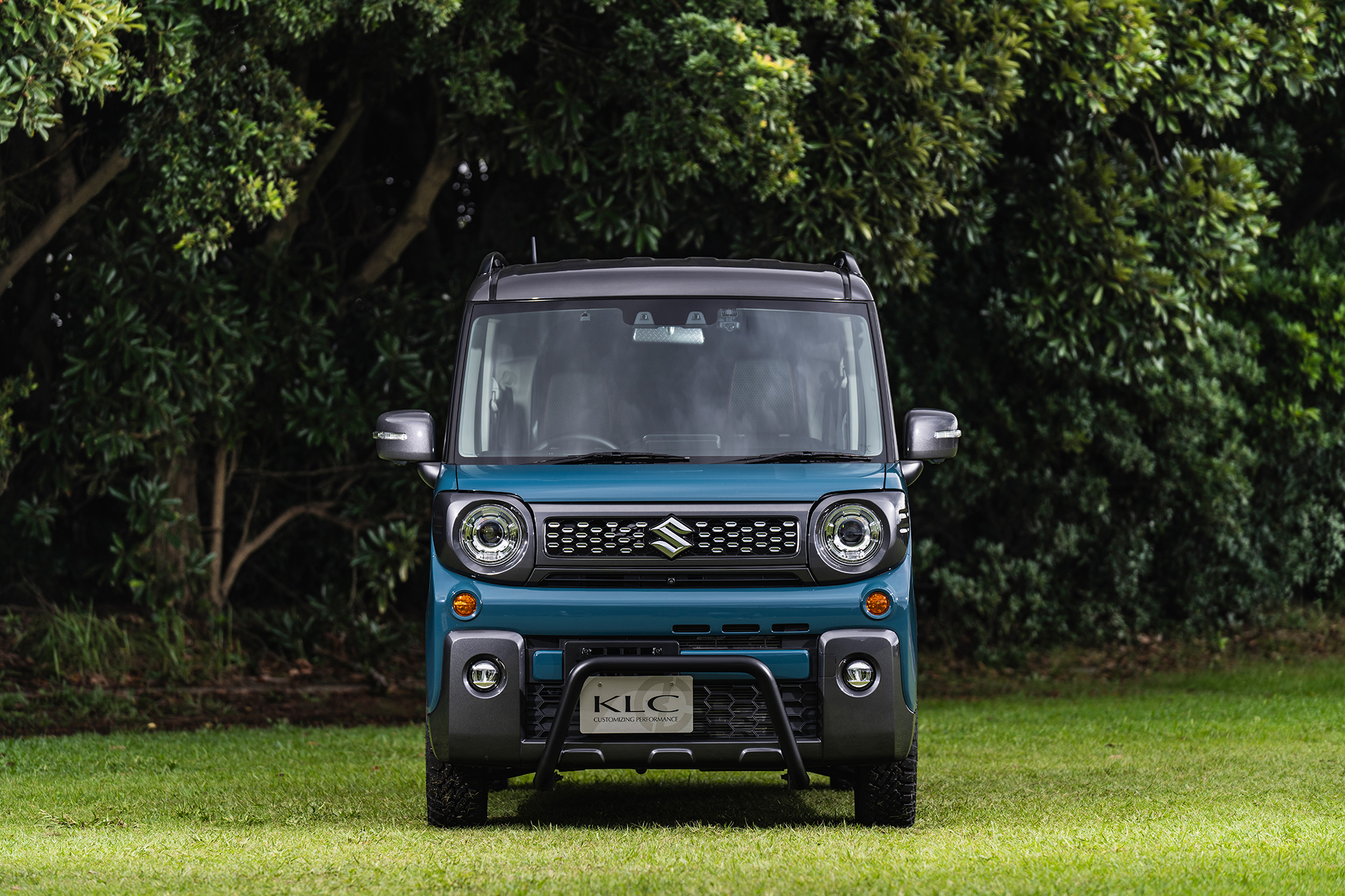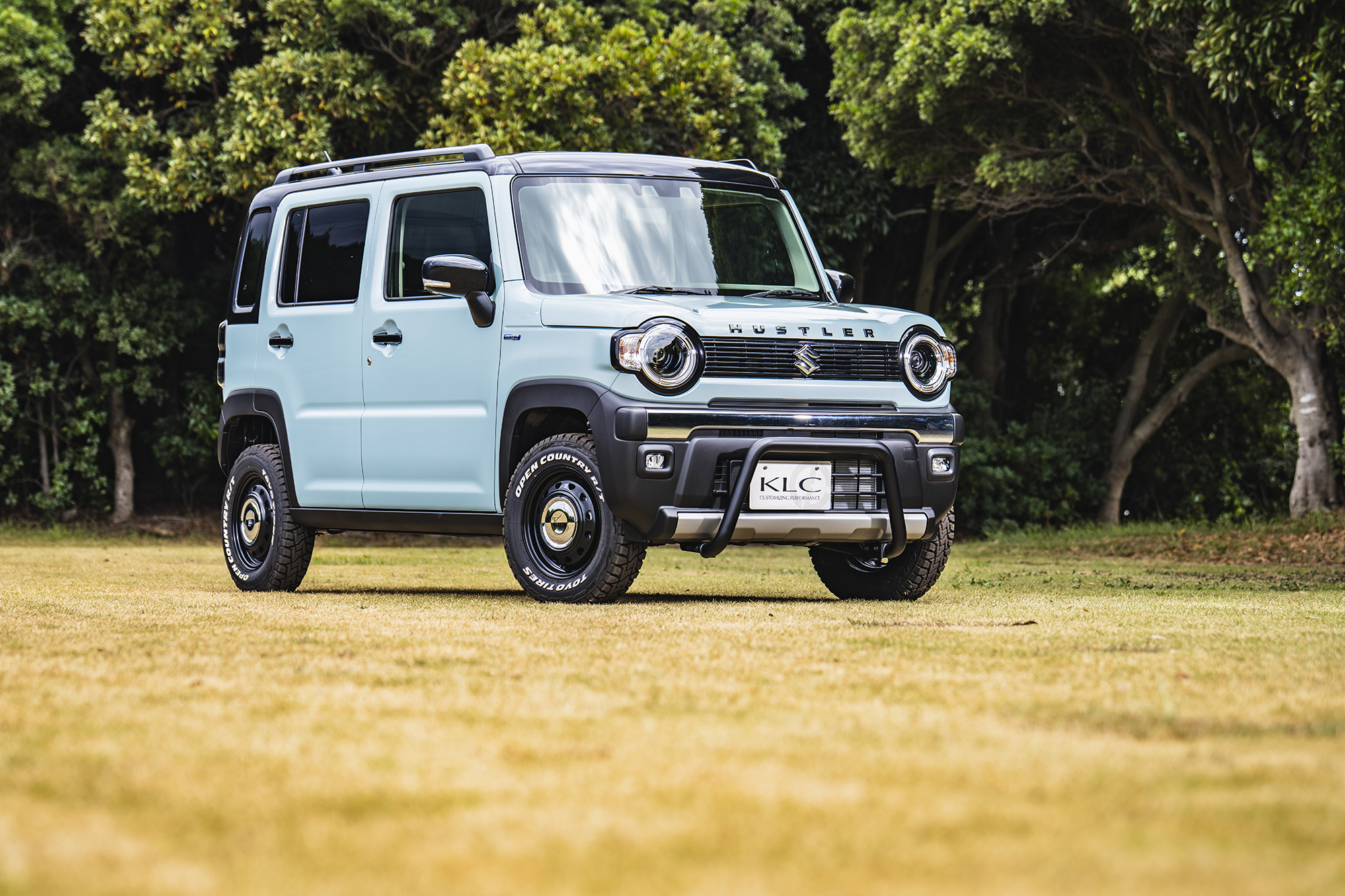 日本でブルバー、カンガルーバーはドレスアップ的な意味合いが強いとはいえ、サイズが大きくゴツいタイプがほとんど。確かにランドクルーザーやハイラックス、ラングラーといったガチのクロカンが装備していると迫力が出ていい感じなのだが、一般的な軽自動車には少々ミスマッチ。そこでKLCでは、スズキ・エブリイやダイハツ・ハイゼットカーゴをはじめとする軽バン、スズキ・キャリイ、ダイハツ・ハイゼットトラックなどの軽トラ、あるいはスズキ・ハスラーやスペーシアギアなど、「リフトアップが似合う軽自動車」をターゲットに、もっとカジュアルに装着できるブルバーの開発を開始した。