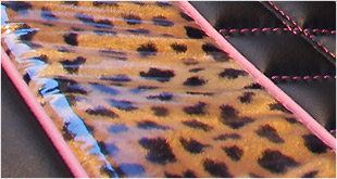 ブラック×ピンクパイピングの落ち着いたコーディネーション、そしてヒョウ柄がアクセントアピール。あなただけの車内空間でリッチさを楽しもう!