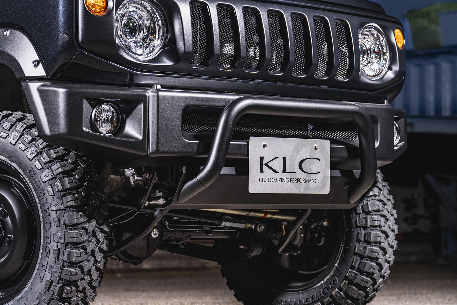 攻めた雰囲気を出しながらも、泥臭くは見せないのがヘリテージのブルバー。横幅、立ち上げ幅、パイプ径など、JB64Wジムニー専用に設計されており、コンパクトなボディに馴染むサイズとなっている。しかもスキッドプレートと一体の構造。フロントショートバンパー64の装着に伴い、あらわになってしまう腹下を自然に隠すことができるのもメリットだ。ブルバーだけ/スキッドプレートだけではちょっと寂しい、という人にオススメ。