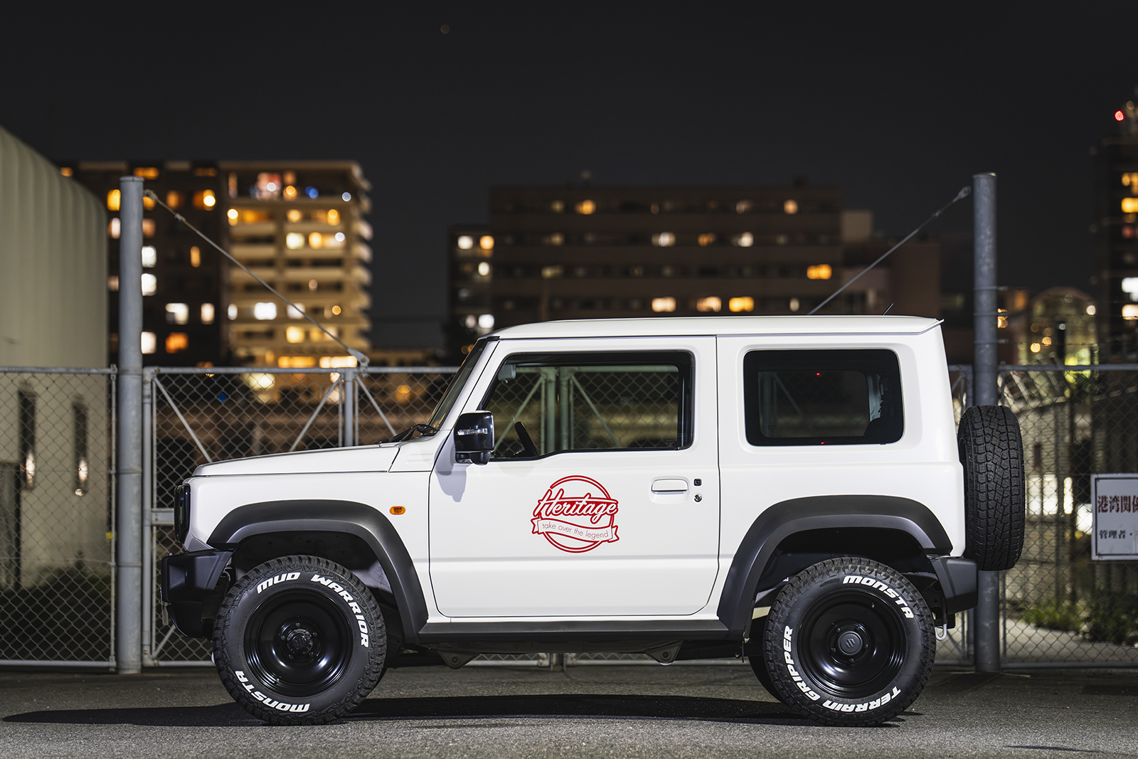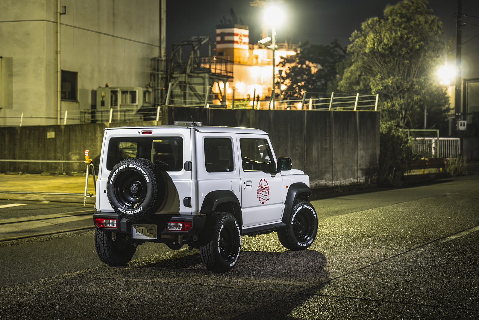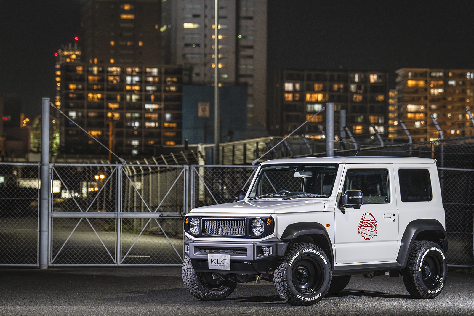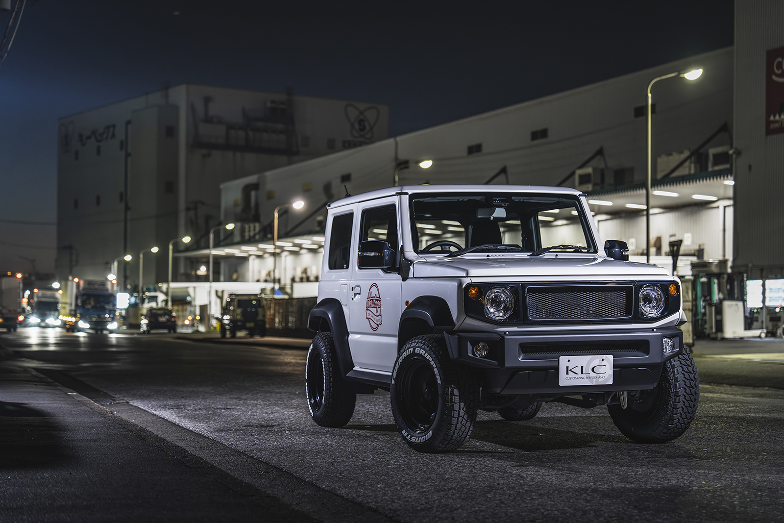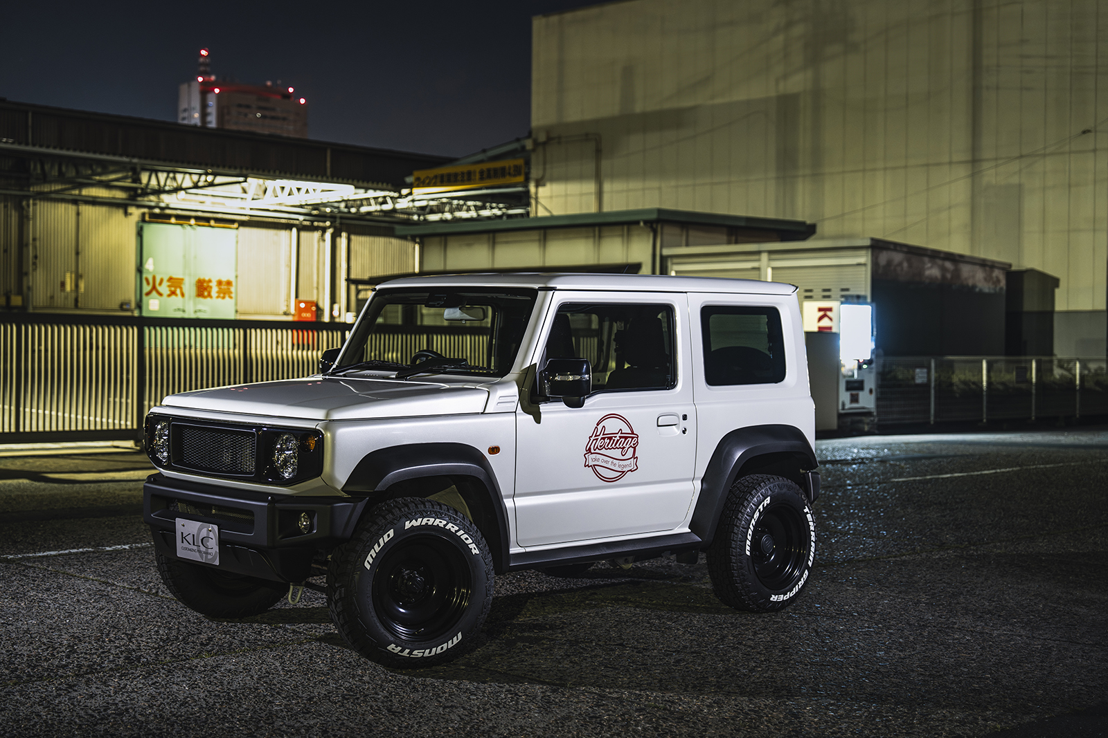 ハコスカ、ケンメリ、S30Zといったクルマたちが活躍した1970年代。マツダからはロータリーエンジンを搭載したサバンナが1971年に登場。レースではサバンナRX-3として名を馳せていたため、そちらで認識している人も多いだろう。マッシブで流麗なフォルムも高く評価されていた、そんな伝説の名車をオマージュ。昭和のフィーリングを現代のジムニーシエラに注入する。あくまでさり気なくだが、分かる人にはきっと分かる、そんなメニュー。