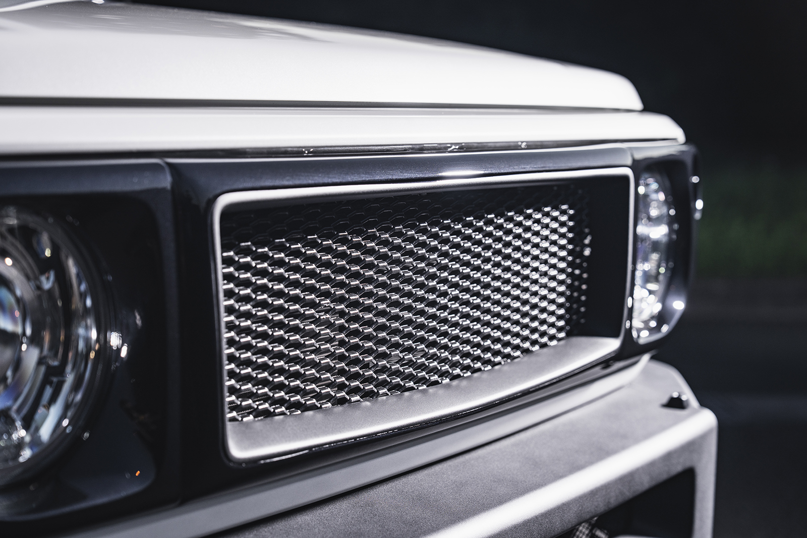 ハニカムメッシュの存在感が際立つフェイスグリルも、旧車意識で仕立てたもの。
