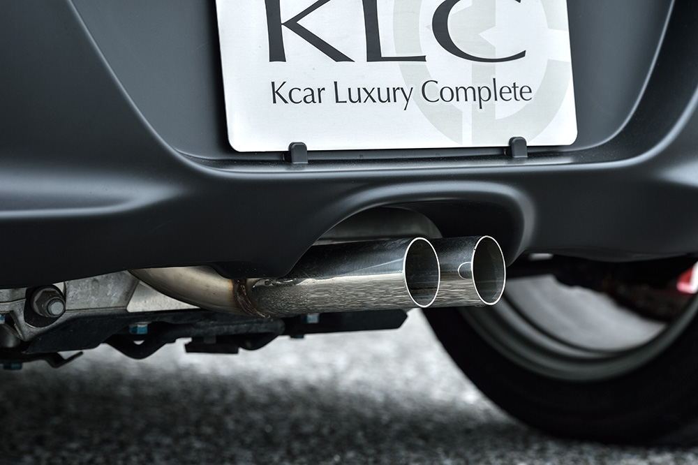 リアウイングは2本の足付きで、一段と疾走感が高まるデザイン。シンプルなプレミアムGTのアンダーリップに似合うよう考慮した、抑えの効いたアダルトなスポーツテイストが嬉しい。せっかくのS600、心地いいサウンドも楽しめるよう、マフラーも新開発。
