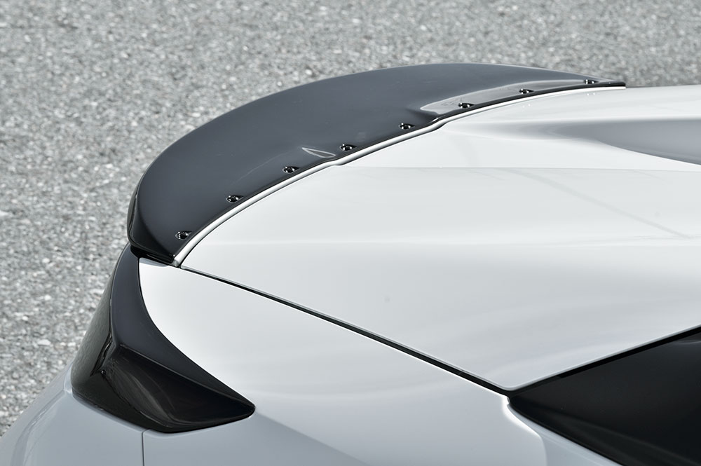 サーキットでの走行性能も維持できるよう設計されている。なお被せて装着するリアウイングはサイド部分にボルトカバー風デザインをあしらうなど、純正に合わせた作り込みが特長です。
